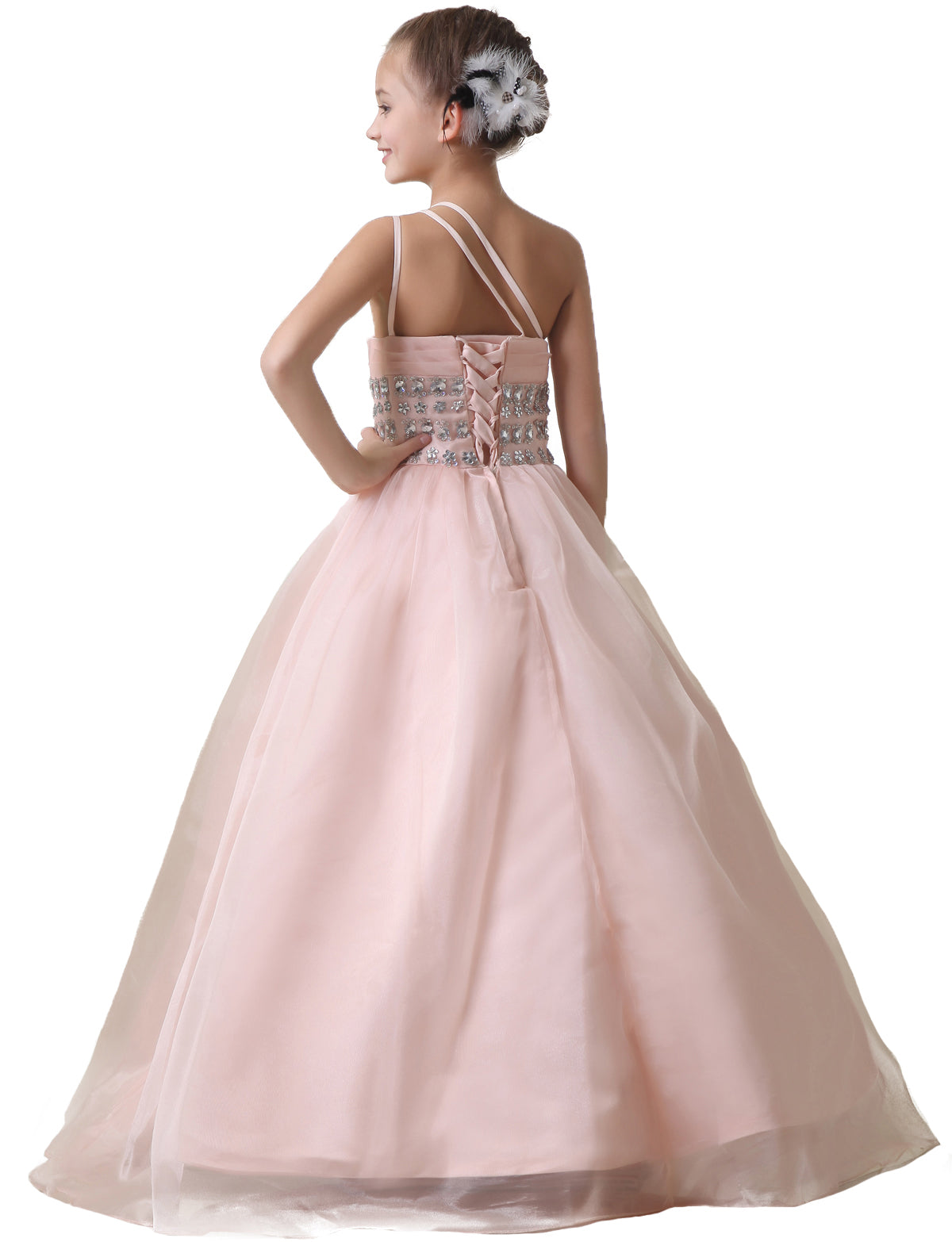 One Shoulder Chiffon Beaded Crystal Flower Girl Dresses